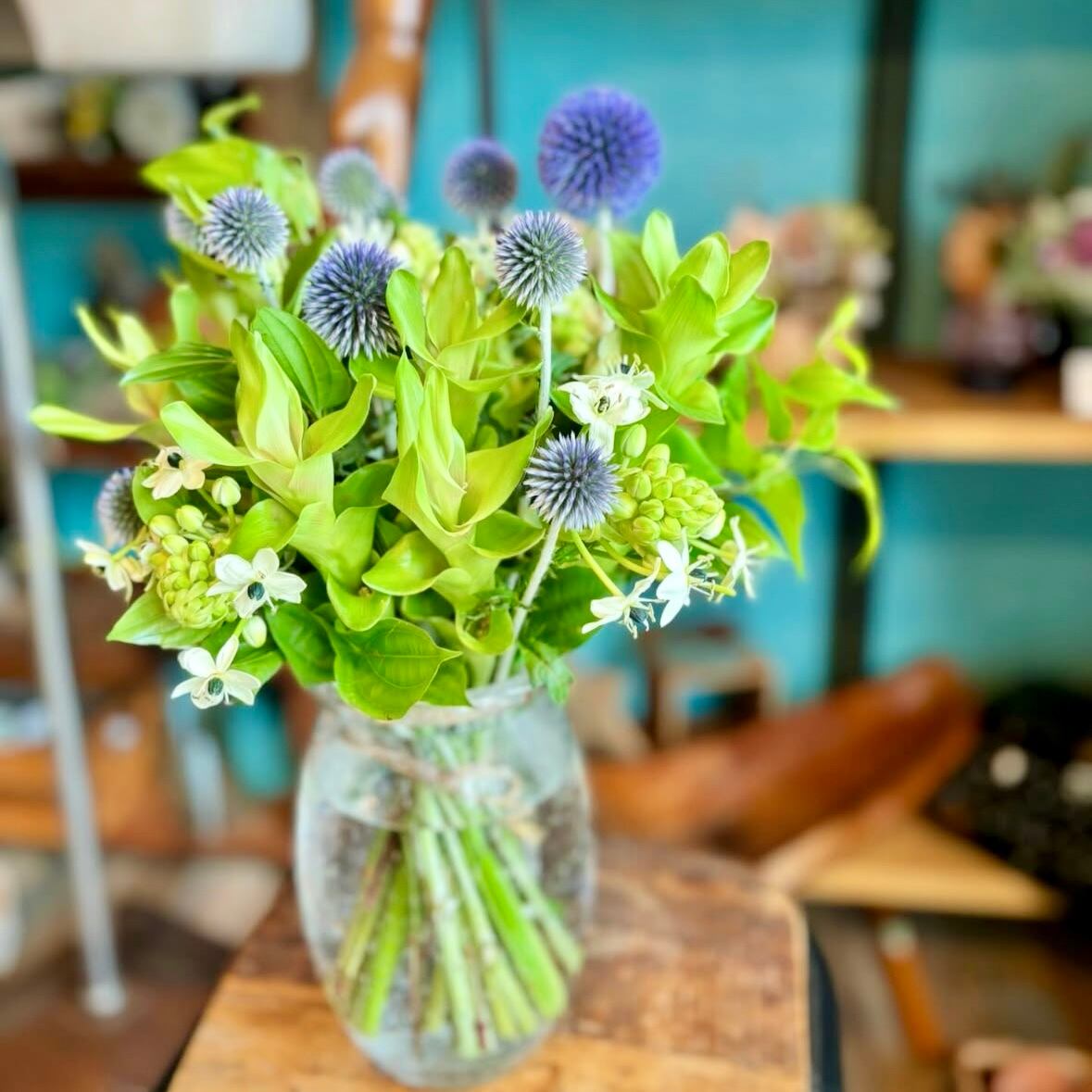 【夏限定】生花ブーケ ブルーグリーン 青 緑 カジュアルブーケ ギフト 爽やか