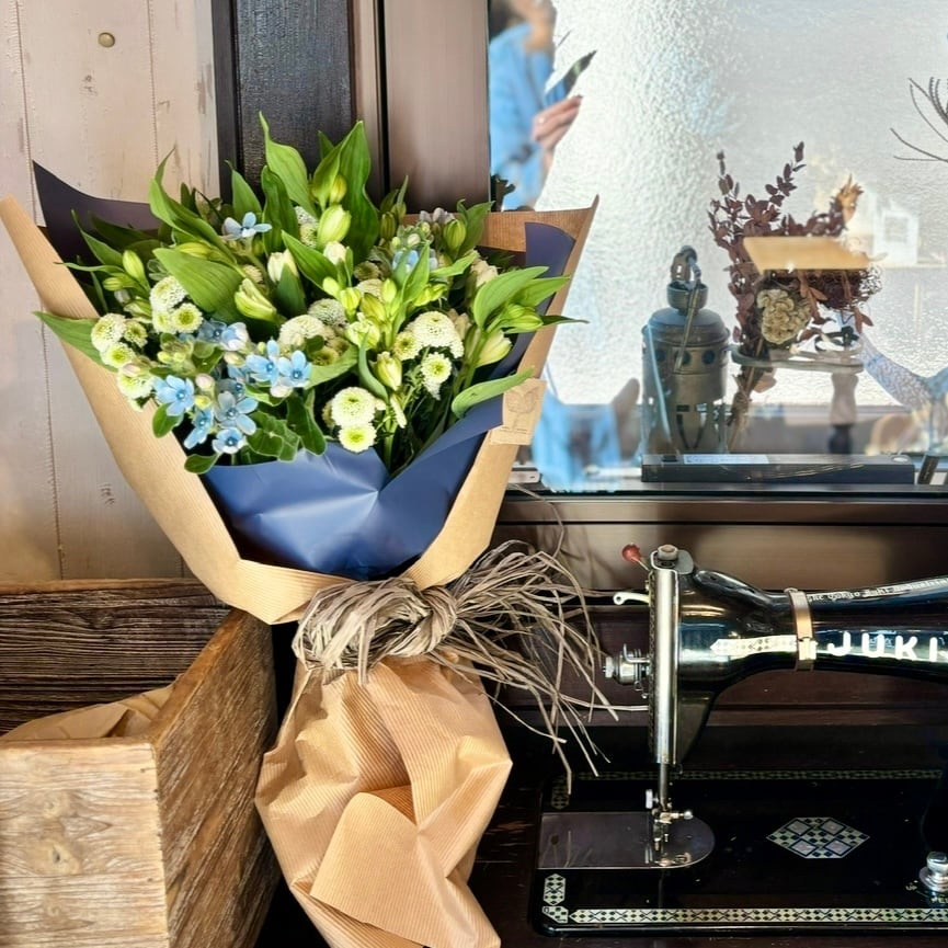 ギフト 花束 生花ブーケ ブルーグリーン ナチュラル 爽やか カジュアル 涼感インテリア 贈り物 心安らぐ