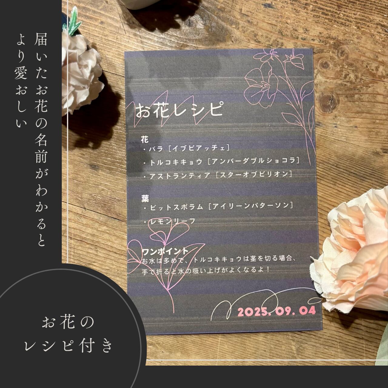 そのためサイズ感の前後はありますが、珍しいお花やちょっと高級なお花など新鮮なデザインをお届けします。