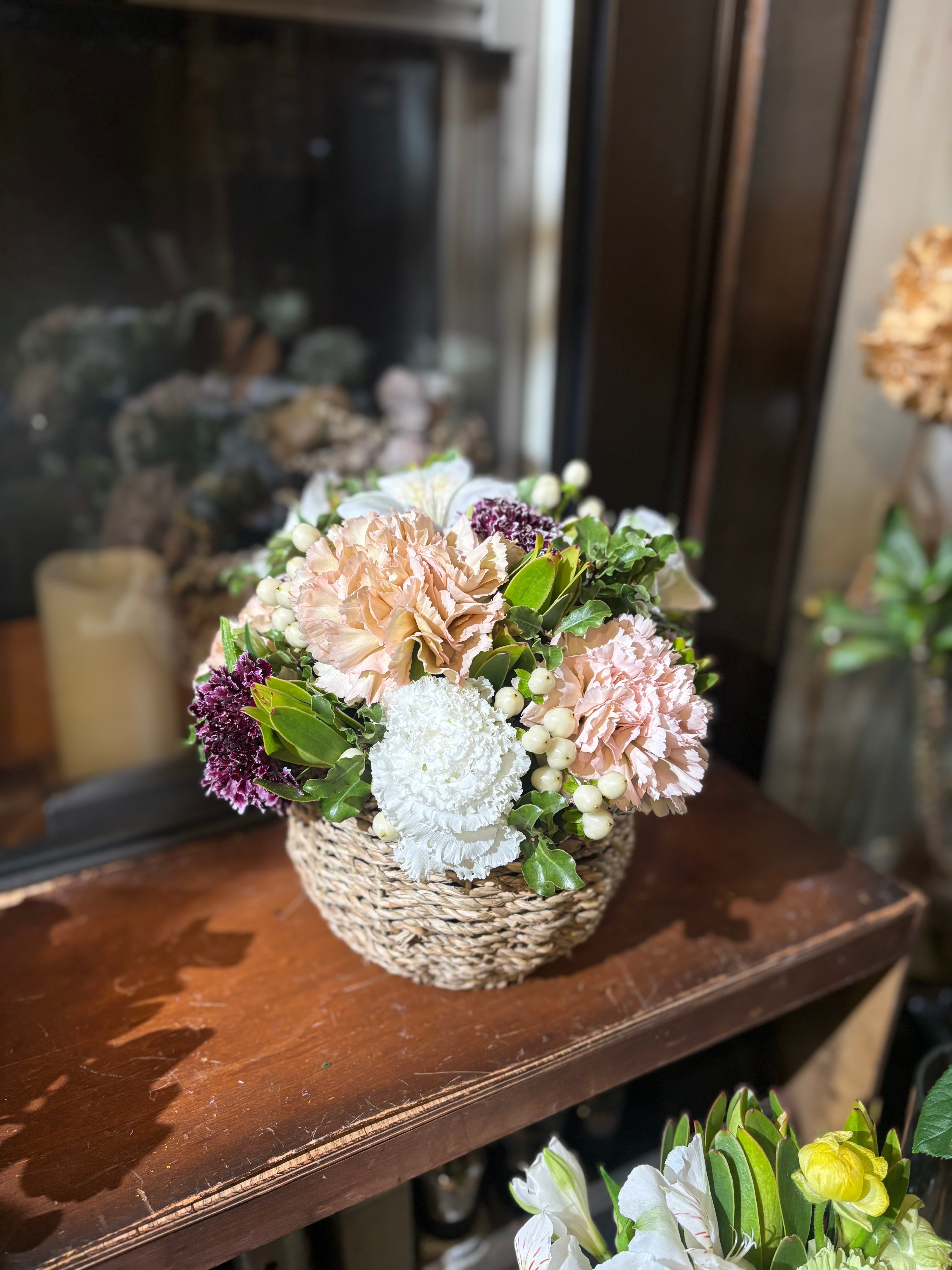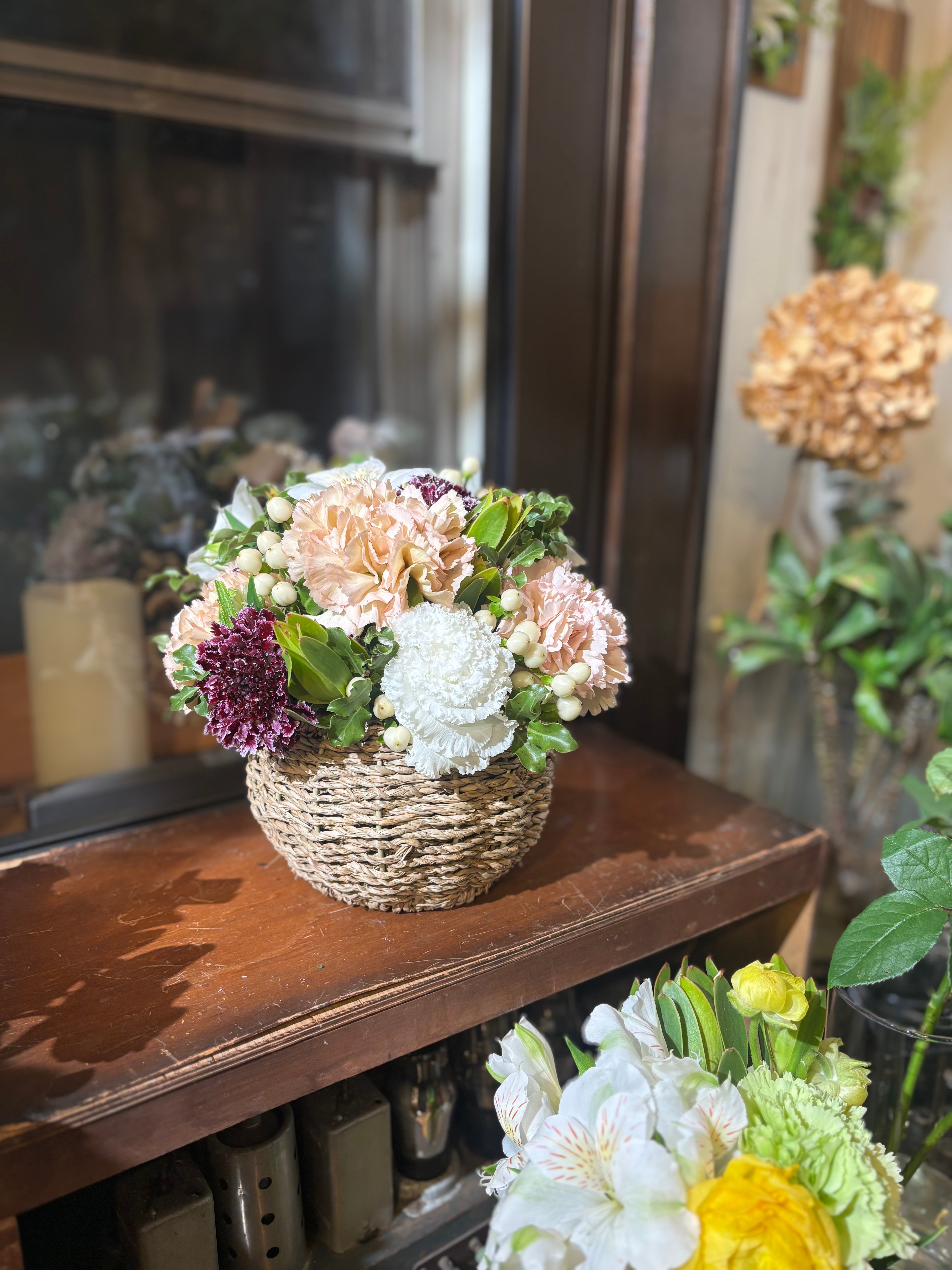 【母の日ギフト】5/10お届け 生花アレンジメント カーネーション 大人かわいい インテリアに馴染むアレンジメント